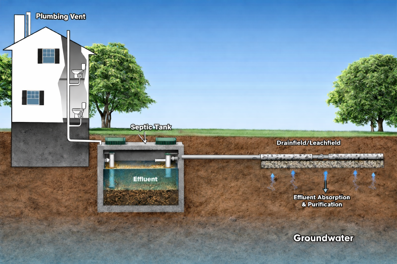 A septic system is made up of several critical components that all need to work together: